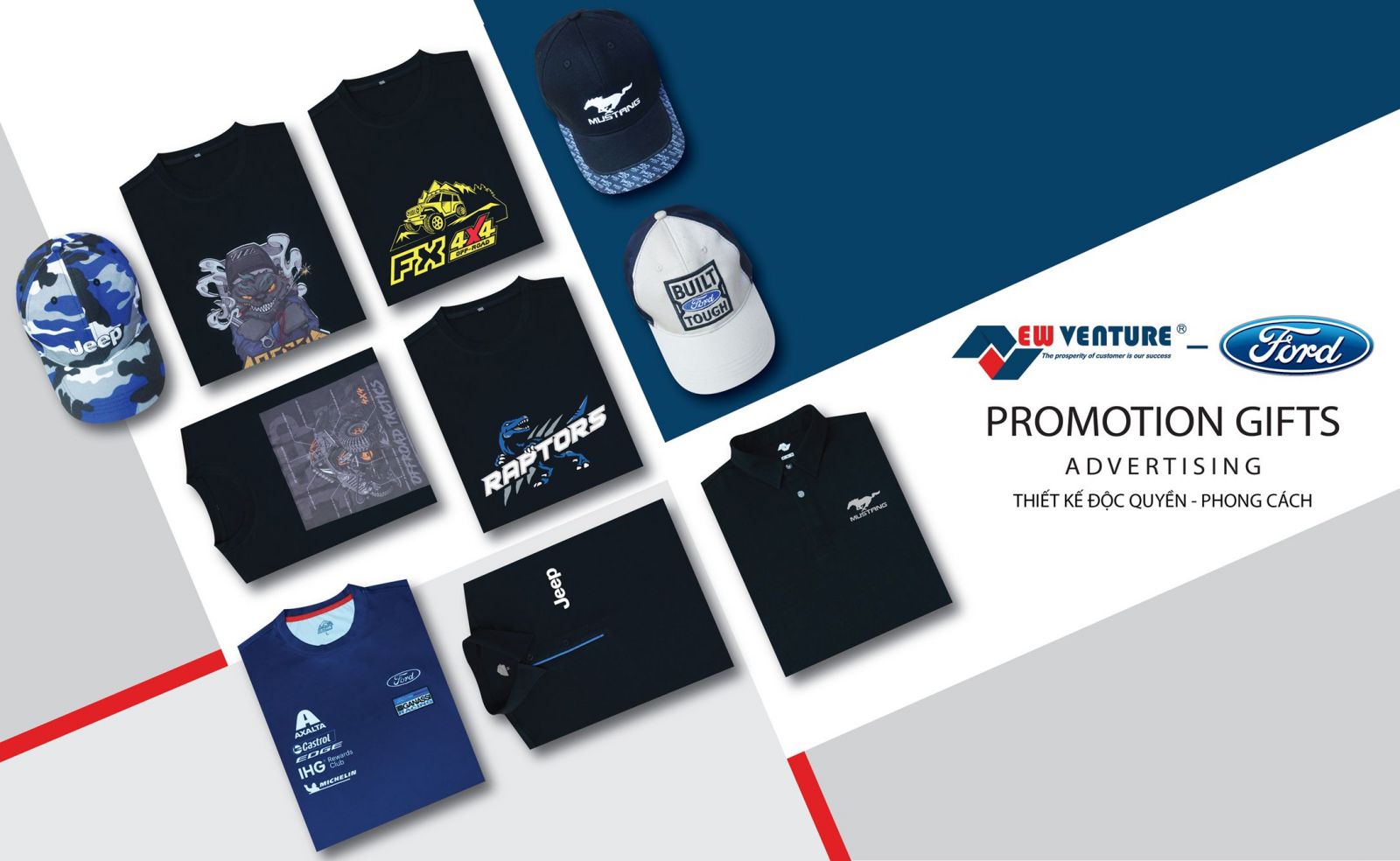Cảm ơn Ford cũng như FXAuto.vn đã đồng hành cùng Newventure trong suốt chặn đường qua với bộ sản phẩm quà tặng thời trang cao cấp Ford với các mẫu áo thun và nón lưỡi trai được thiết kế sang trọng – phong cách – độc đáo.