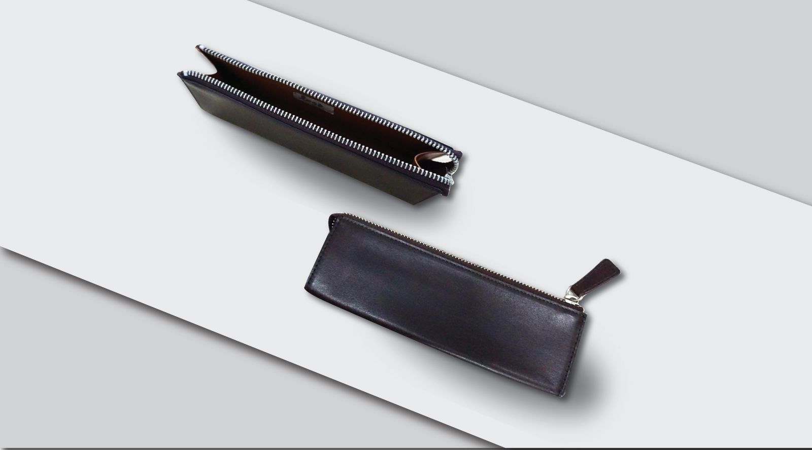 Chiếc ví được làm theo chiều dài chuẩn của một cây bút, thêm vào đó các yếu tố bên ngoài như dây kéo , chất da, nút cài tạo phong cách sang trọng cho món phụ kiện không thể thiếu cho giới doanh nhân, văn phòng